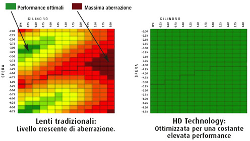 Lenti monofocali HD con superfici asferiche e atoriche ottimizzate per Astigmatismi irregolari o cheratoconi.